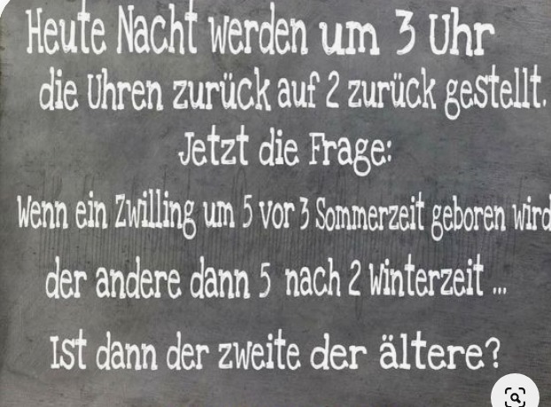Zeitumstellung verstehen nur die auserwählten Menschen, die wissen, dass die Erde eine Kugel ist und demnach die Sonne nicht überall gleichzeitig und gleichstark scheinen kann.