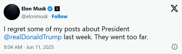maxikatze hat geschrieben:Elon Musk gibt Fehler zu – Trump sagt, er würde ihm vergeben