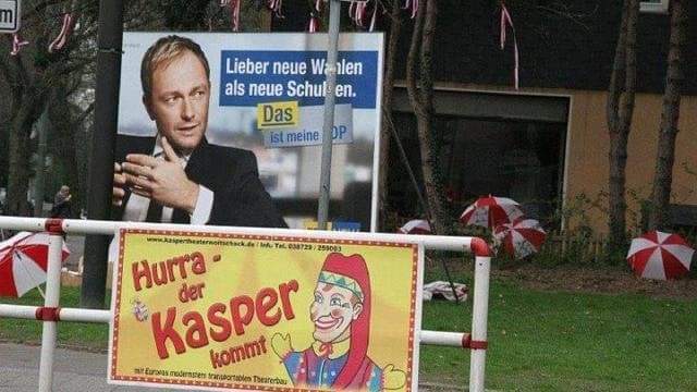 Dann soll er aus der FDP austreten, die macht die Scharade schließlich mit.