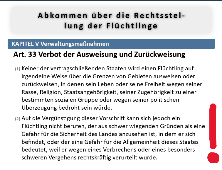 Es kann doch nun wirklich nicht sein, dass der EGMR, die Länder dazu verdonnert, Straftäter zu behalten. Ich erinnere zum wiederholten Mal an die Genfer Flüchtlingskonvention, Artikel 33: