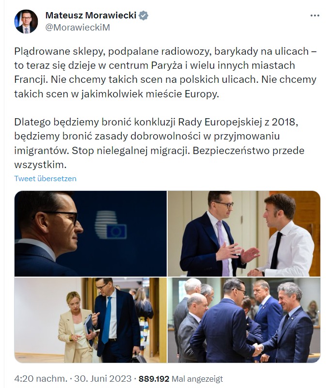 Illegale Migration wird von der EU nicht gestoppt, aber man übt Druck auf Polen und Ungarn aus, will sie bestrafen, wenn sie keine Migranten aufnehmen. Ich nenne das Erpressung. Diese Länder wollen in ihren Städten keine aus dem Ruder gelaufenen Zustände. Ich auch nicht.