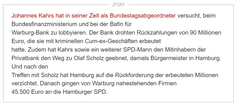 AlexRE hat geschrieben:maxikatze hat geschrieben:Strate mit „Cum-Ex“-Anzeige gegen Scholz und Tschentscher gescheitertDer Anwalt hatte den SPD-Politikern Beihilfe zur Steuerhinterziehung vorgeworfen. Die Staatsanwaltschaft hat die Eröffnung eines Ermittlungsverfahrens nun abgelehnt.