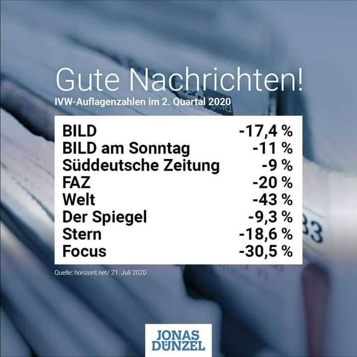 Normalerweise neige ich überhaupt nicht zur Schadenfreude, aber das ist für mich ebenfalls eine gute Nachricht. Die demokratieschädlichen Journalistendarsteller bekommen von dem Volk, an dem sie herumerziehen wollen, die gelbe Karte.