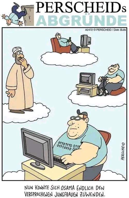 Ich habe immer noch das Bekenner - Video zu 9/11 in Erinnerung. "80 Jahre des Unrechts sind nun vorbei" - mehr muss man nicht wissen, um den vermeintlichen religösen Fanatismus als verspätete orientalische Variante des europäischen Faschismus`der Zwischenkriegszeit einordnen zu können. Die Araber haben sich bei der Neuordnung der Welt nach 1918 genauso von den Hauptsiegermächten betrogen gefühlt wie u. a. Italiener, Japaner und natürlich die Kriegsverlierer. Dazu hatten sie ja auch gute Gründe. Mit Religion haben die allerdings nicht zu tun, die wird von den arabischen Faschisten nur vorgeschoben. So kann man die ganze muslimische Welt nach nützlichen Idioten abgrasen.