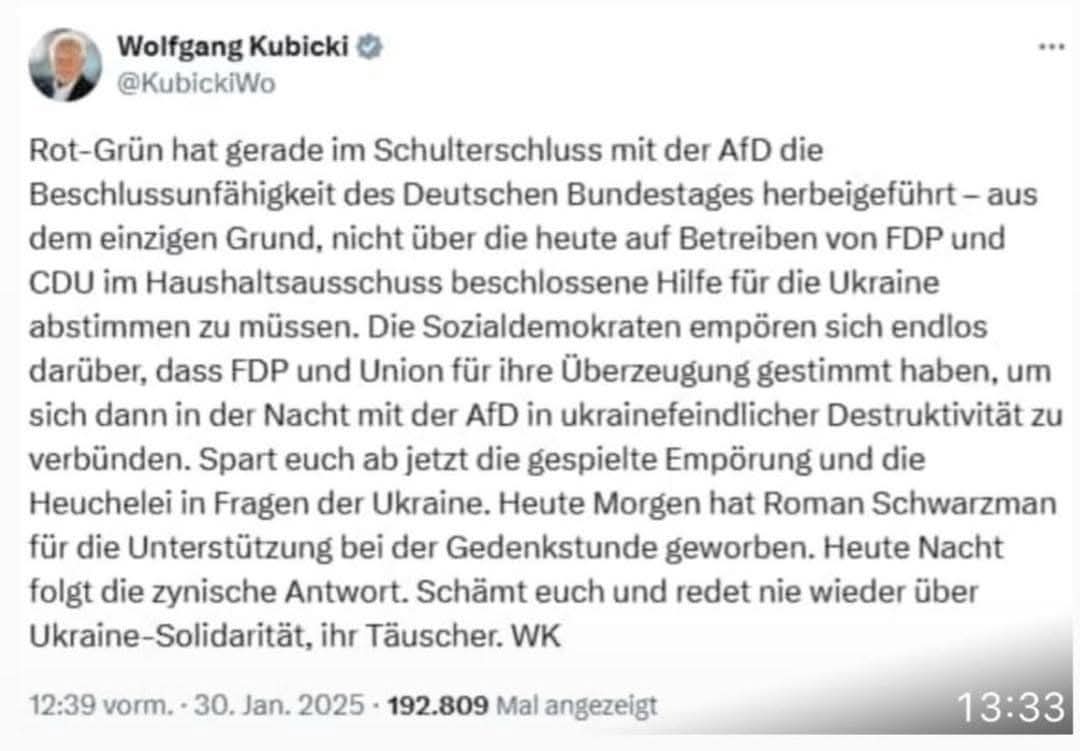 Das hat W. Kubicki auf X/Twitter dazu geschrieben: