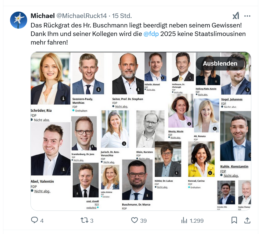 Die Abweichler bzw. die FDP-Parlamentarier ihre Stimme nicht abgegeben haben.