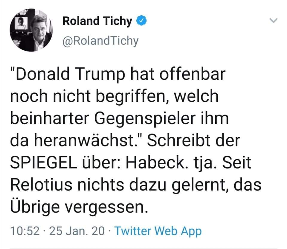 Das kommt aber andernorts (besonders in den USA) überhaupt nicht gut an. Habeck hat das jetzt erlebt, aber es ist - alleine aufgrund seiner Selbstüberschätzung und Eitelkeit - unwahrscheinlich, daß er daraus Konsequenzen zieht.