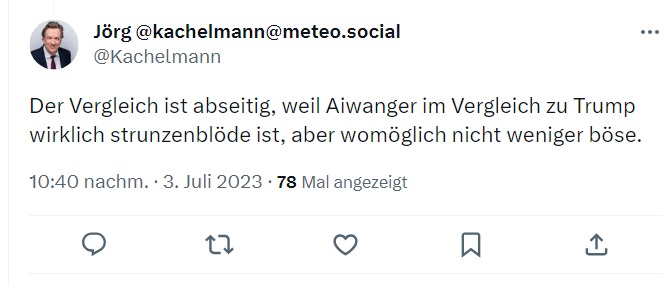 maxikatze hat geschrieben:Die "Welt" führte ein Interview mit Hubert Aiwanger - ein Leserkommentar dazu: