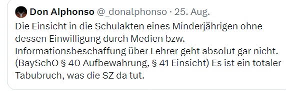 Was für ein Zufall so kurz vor der LTW in Bayern. Die Vorverurteilung ist auf Twitter in vollem Gang, obwohl aus dem Schriftstück nicht hervorgeht, wer der Verfasser ist. Aber Hauptsache, man hat erstmal Dreck auf jemanden geworfen.