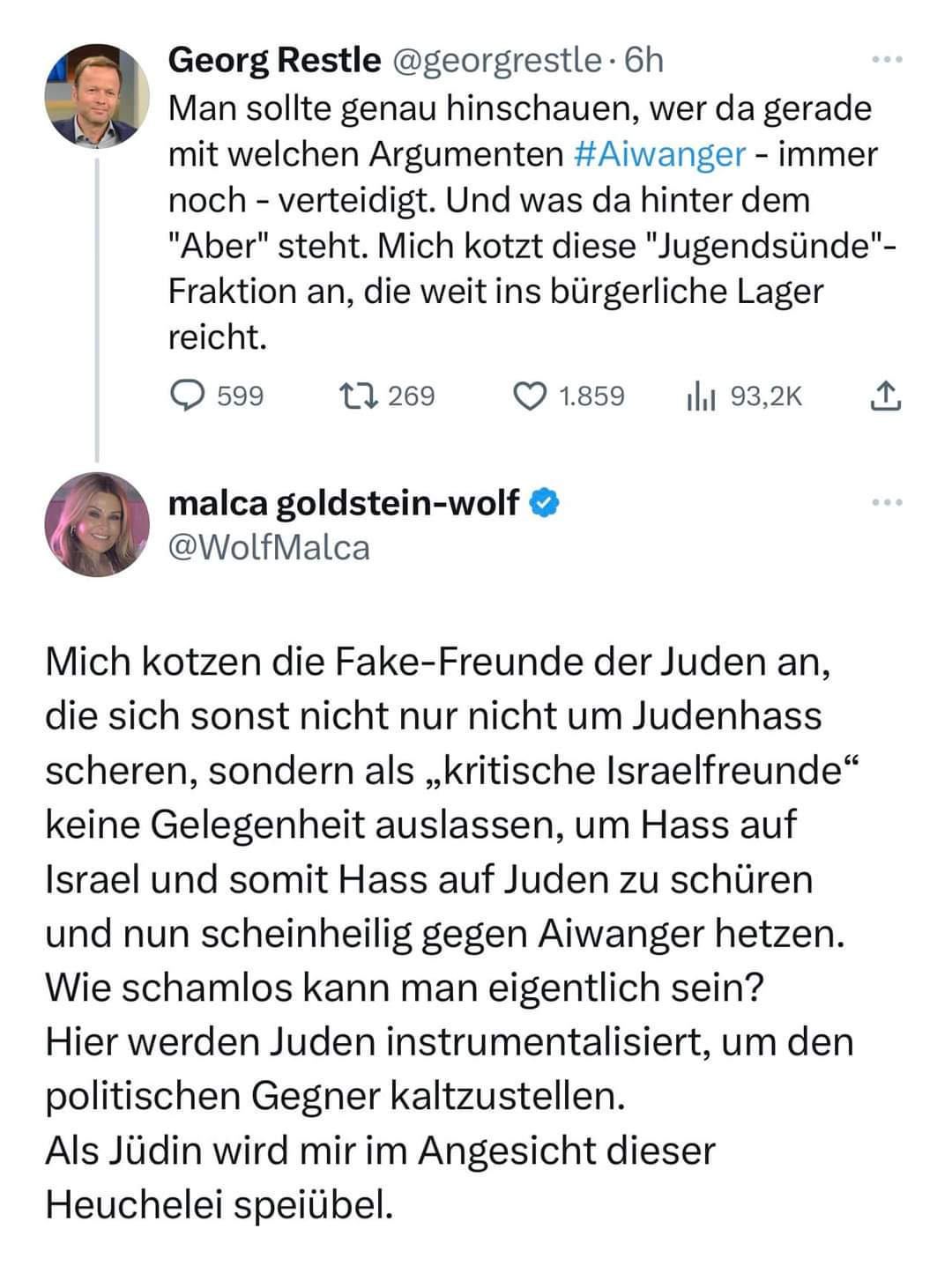 Wolffsohn dürfte jedem Leser dieses Forums bekannt sein, Frau Malca Goldstein-Wolf ist eine umtriebige jüdische Aktivistin. RA Steinhöfel hat schon einmal ein Verfahren gegen Facebook für sie gewonnen: