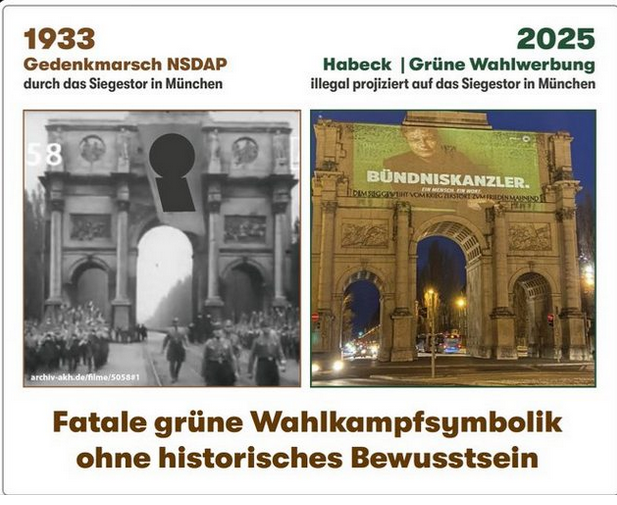 Man stelle sich den Aufschrei der Grünen und den anderen Altparteien vor, wenn statt Robert Habeck Alice Weidel projiziert worden wäre.