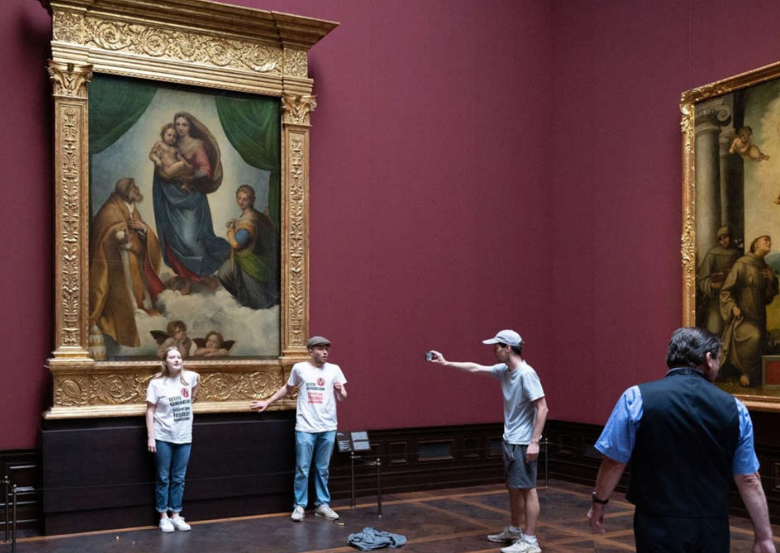 Fanatiker haben sich in der Dresdner Gemäldegalerie an den Bilderrahmen von Raffaels Sixtinischer Madonna geklebt. :roll:
