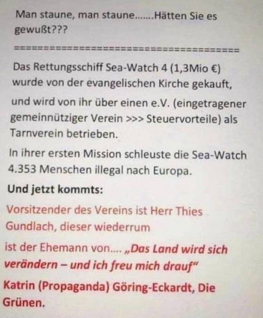 Dass es sogar acht deutsche Schiffe sind, die im Mittelmeer unterwegs sind, war mir neu. Verständlich, dass Melonie daher fordert, dass sich Deutschland um diese Flüchtlinge selber kümmern soll. Diese Sichtweise ist nachvollziehbar.