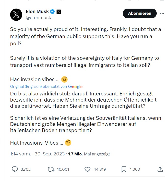 Elon Musk teilt kritischen Beitrag zur deutschen Seenotrettung – Auswärtiges Amt reagiert