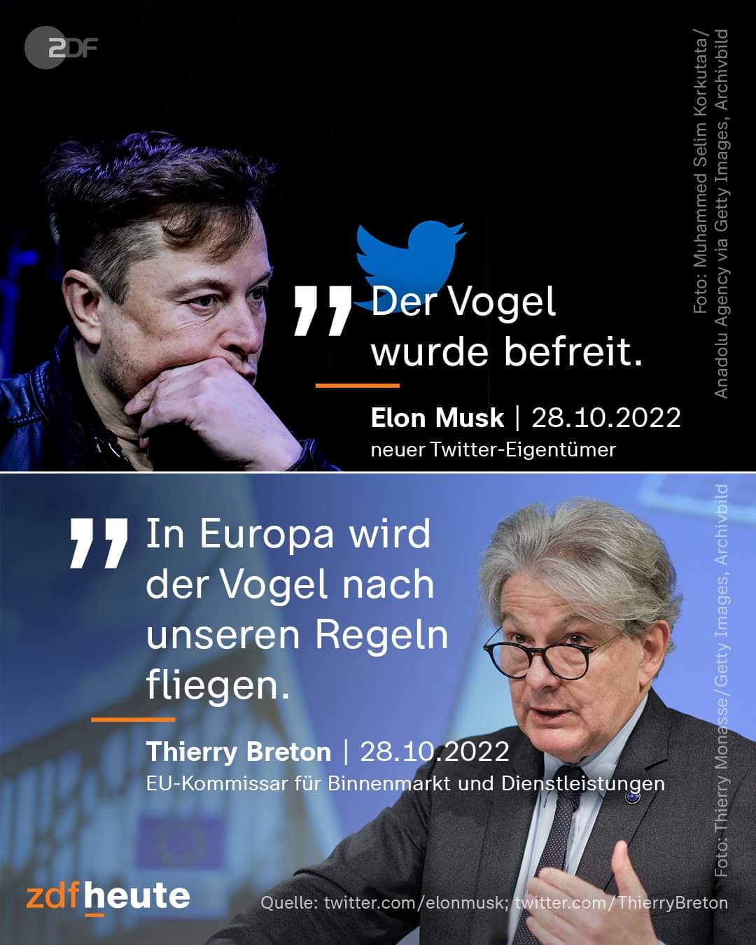Die EU - Apparatschiks bilden sich allerdings ein, Musks Vorstoß in Richtung weitestgehender Meinungsfreiheit abfangen zu können: