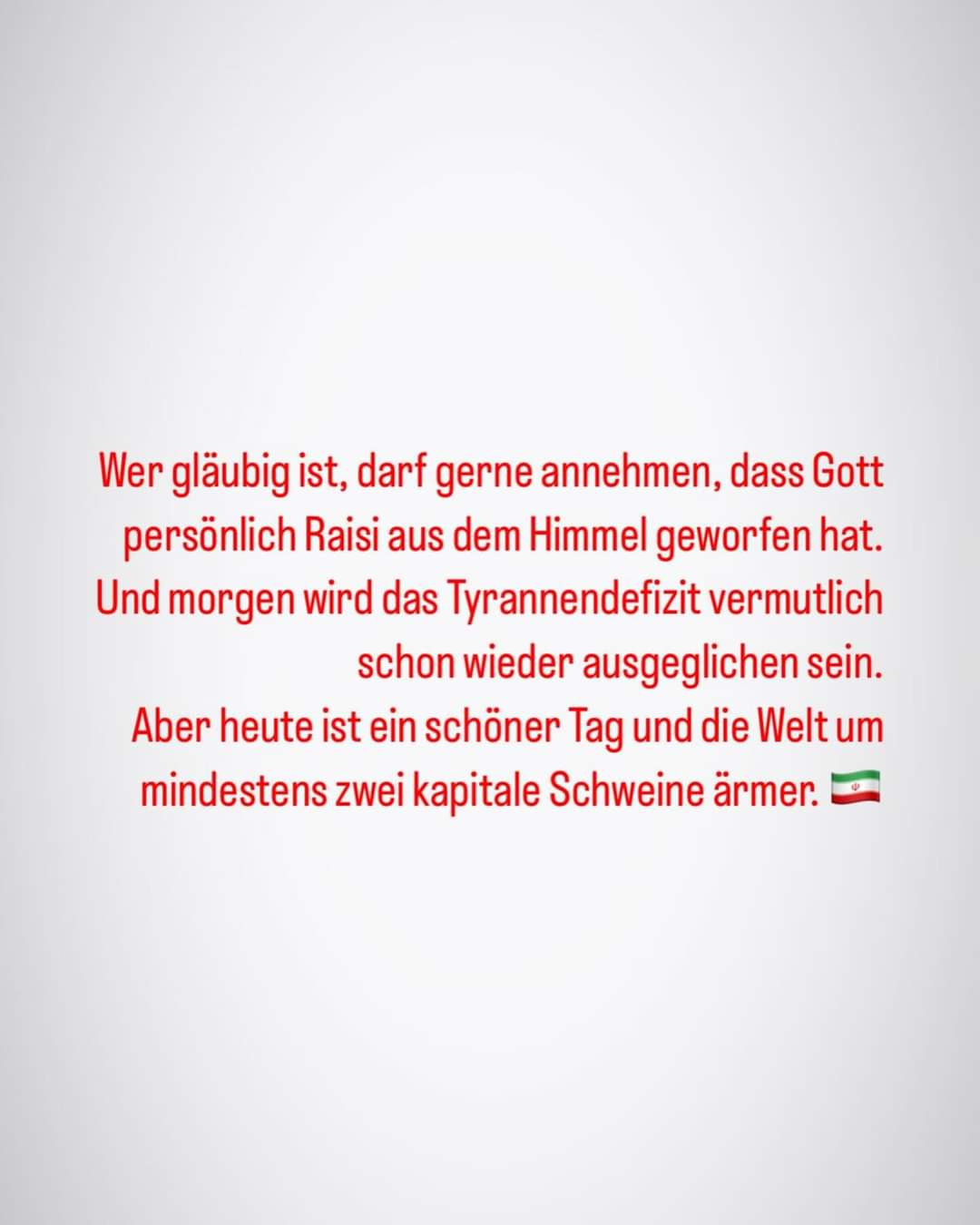 Ich sage daher, dass es gut ist, dass Raisi tot ist.