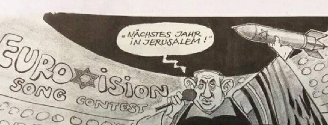 Ich möchte Sie fragen, was genau Sie mit der Karikatur von Netanyahu mit Bombe in der Hand und im Kostüm der ESC Gewinnerin Netta ausdrücken wollten?